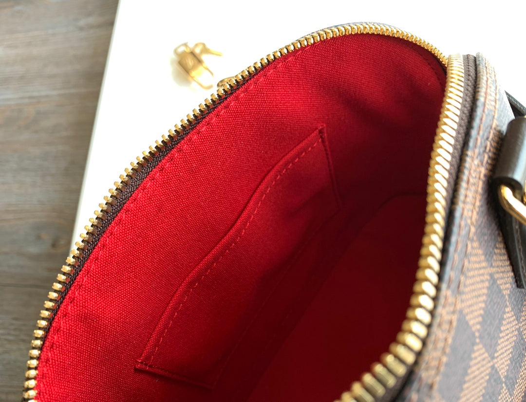 Brown Top-quality Monogram Canvas Original. Originating in 1934, the Louis Vuitton Alma handbag has evolved over time from a square-cornered travel bag into the elegant women's handbag it is today. This mini handbag, made of Monogram canvas, can easily hold keys, wallet, phone, and lipstick. The Alma BB handbag comes with an adjustable strap that can be worn at waist or hip height for a comfortable crossbody look. Comes with boutique gift box packaging