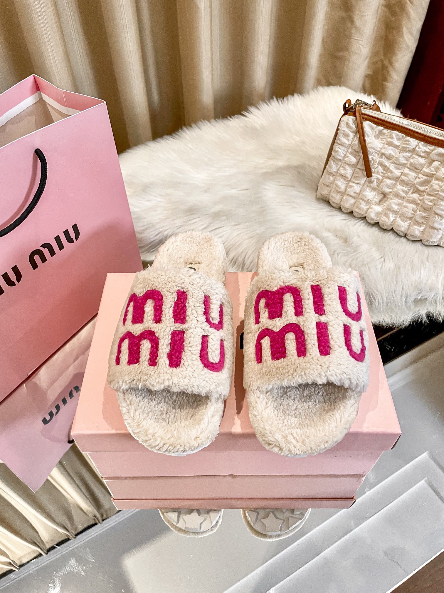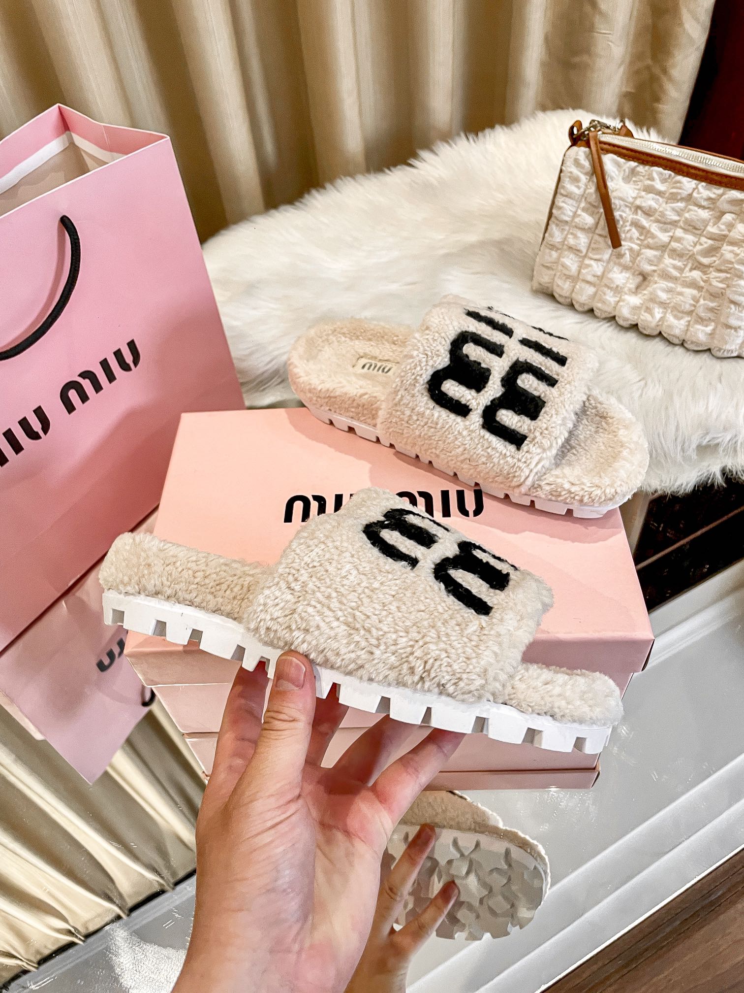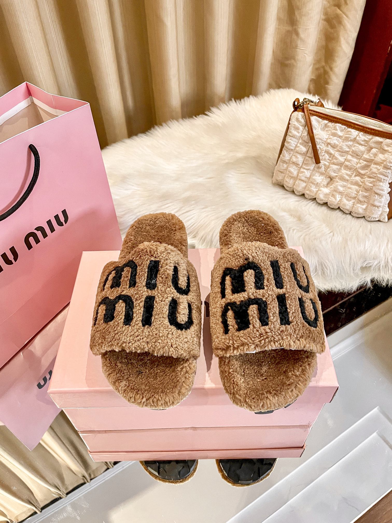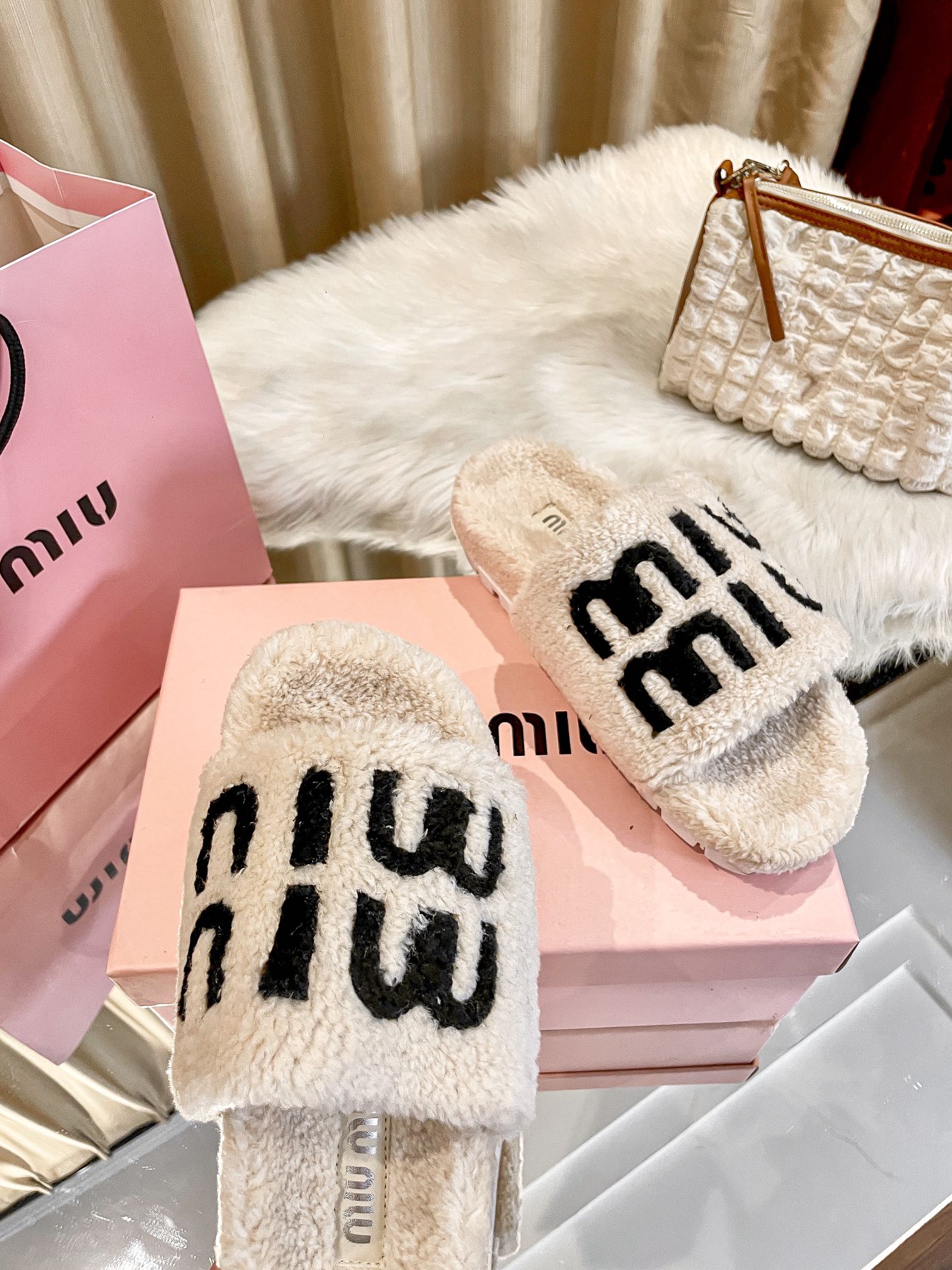1:1 MiuMiu 2024 Fall/Winter Furry Slippers