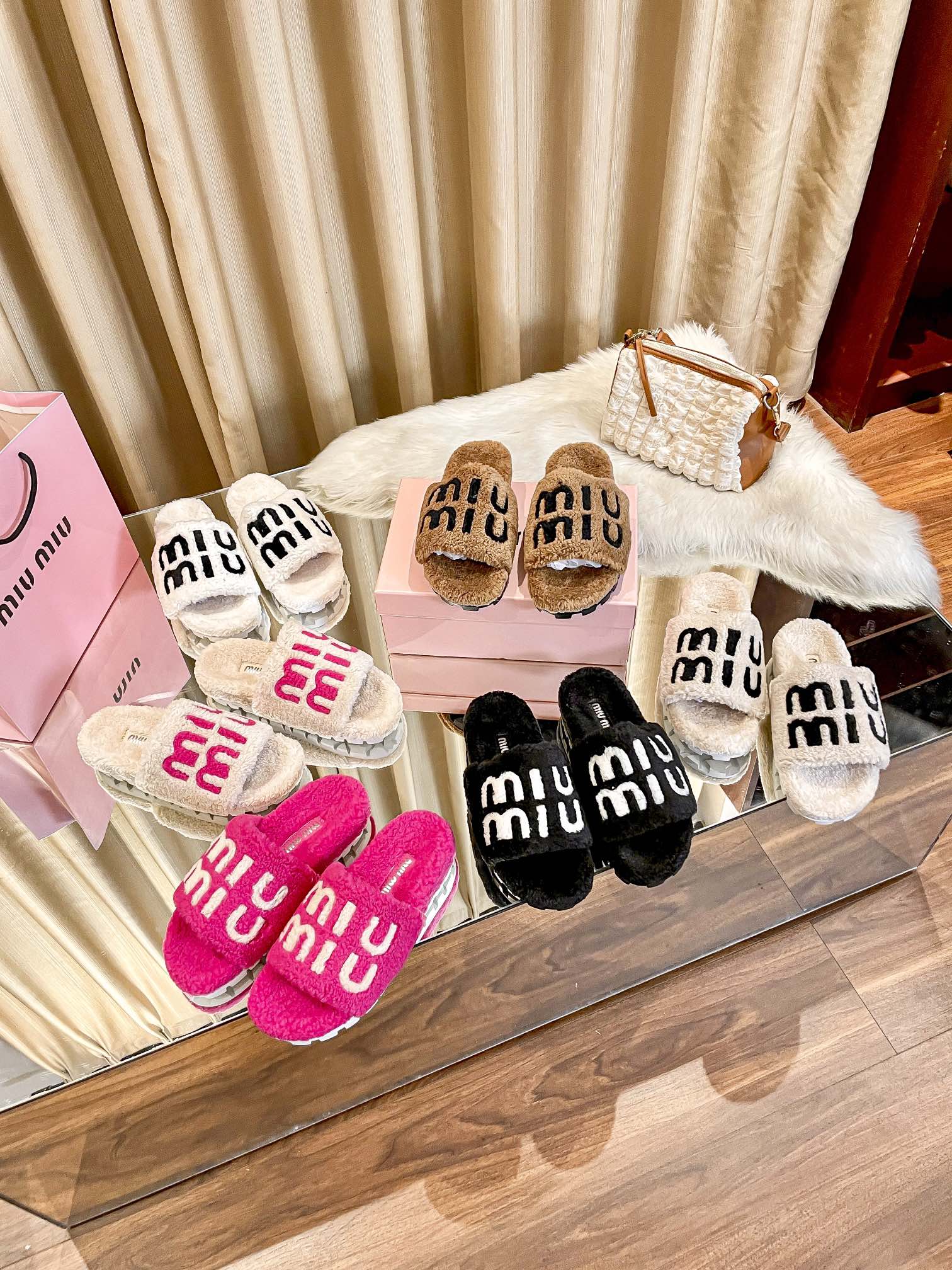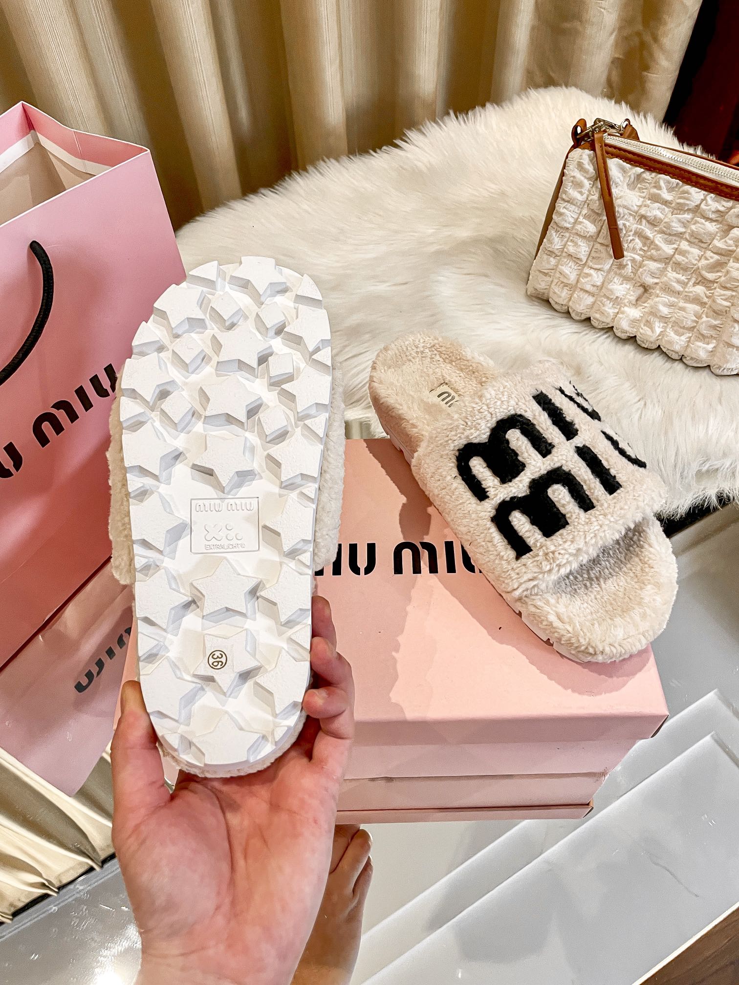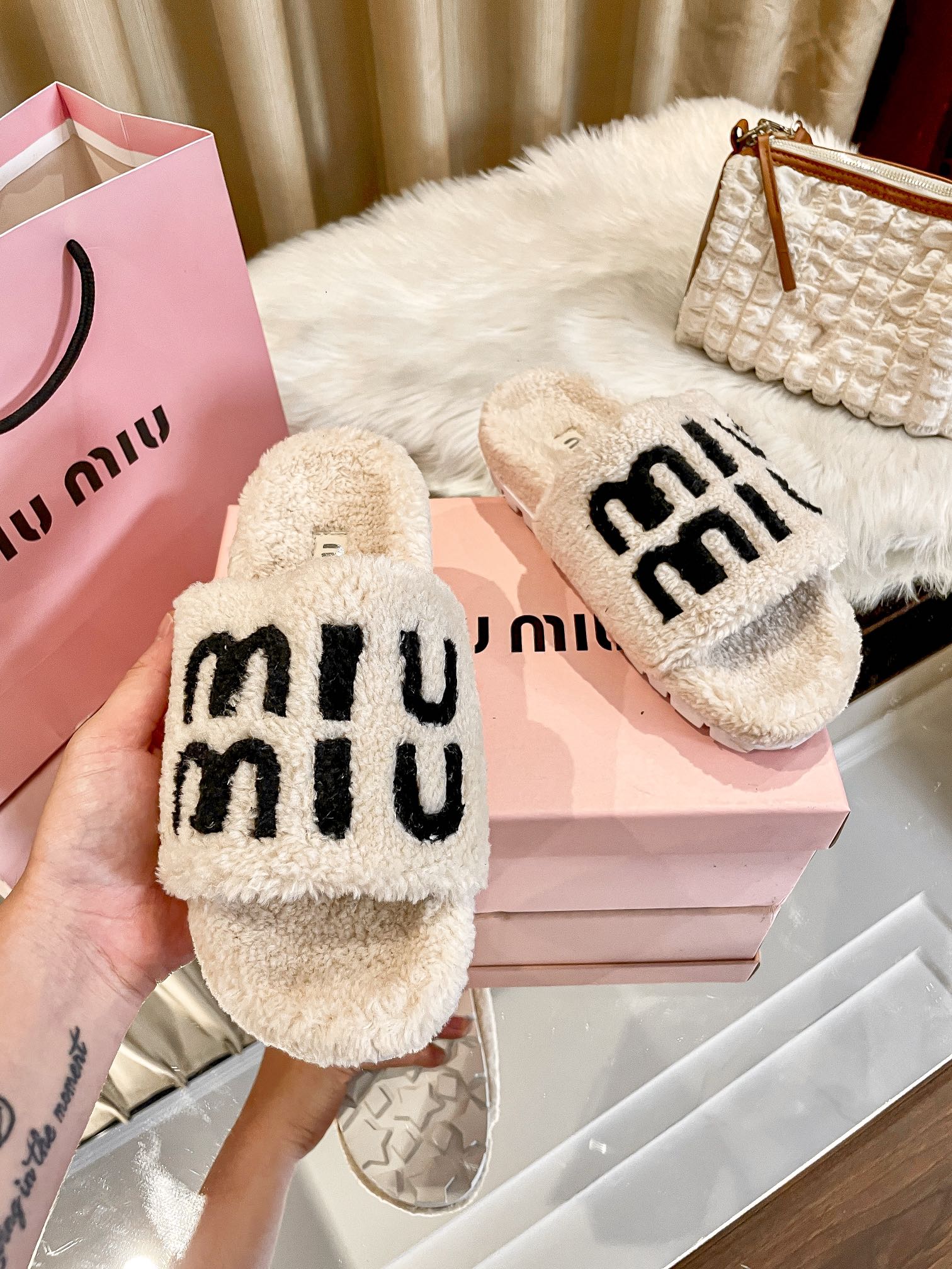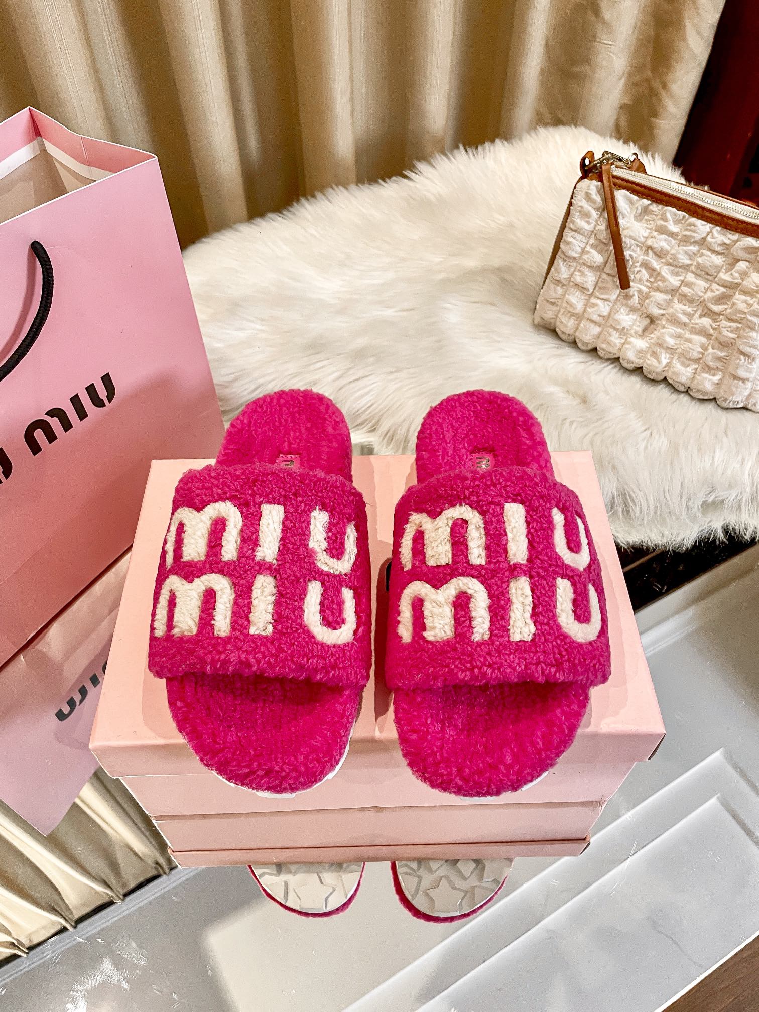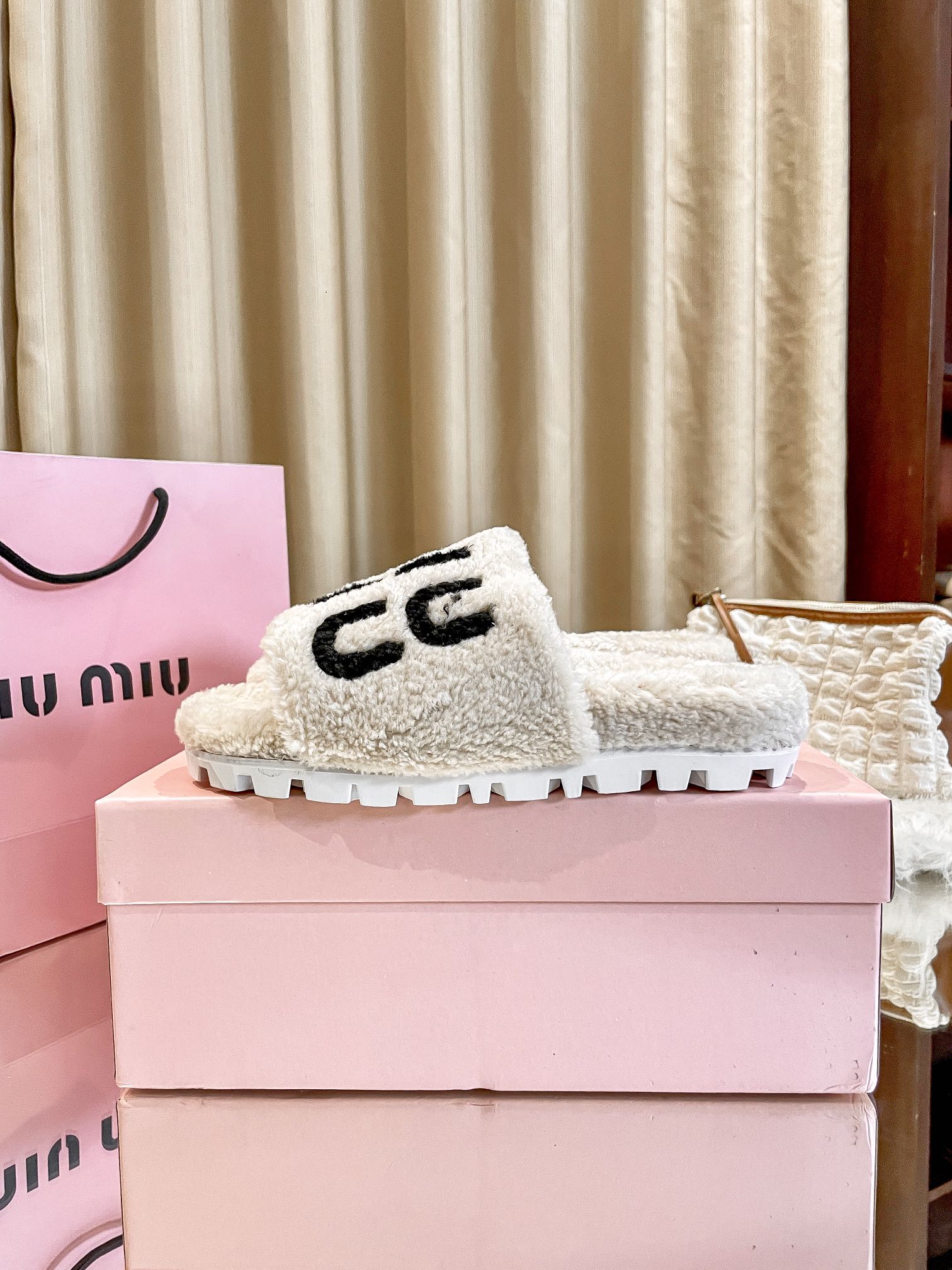 1:1 MiuMiu 2024 Fall/Winter Furry Slippers