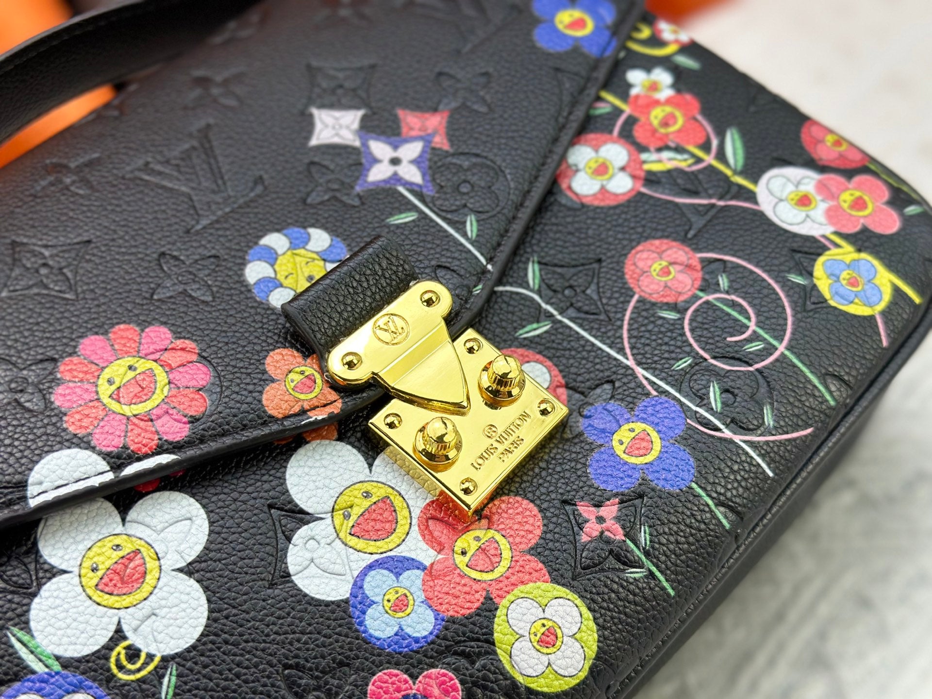 Takashi Murakami collaboration POCHETTE MÉTIS handbags offer a restrained yet clever design that reinterprets the classic preppy backpack. The supple Monogram Empreinte leather creates a compact and flexible structure, concealing ample space within. Dimensions: 25 x 19 x 7 cm (Length x Height x Width)