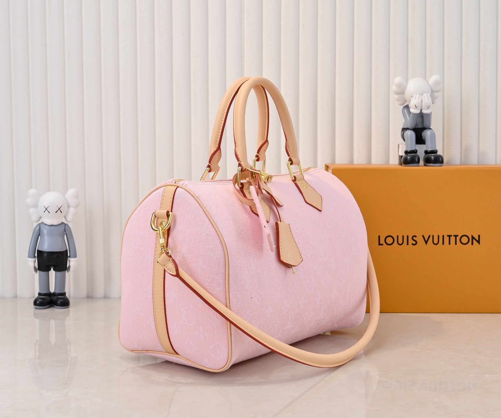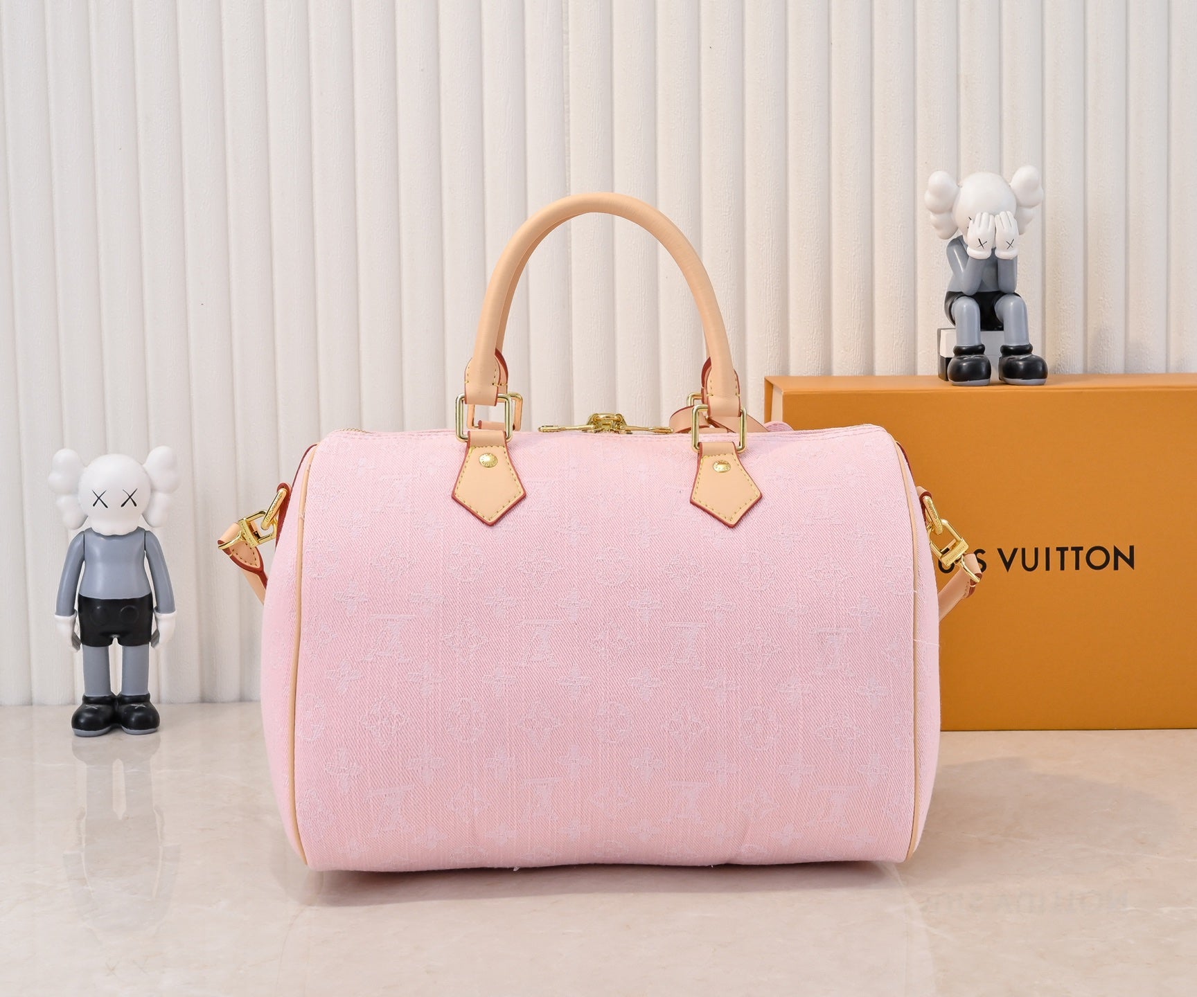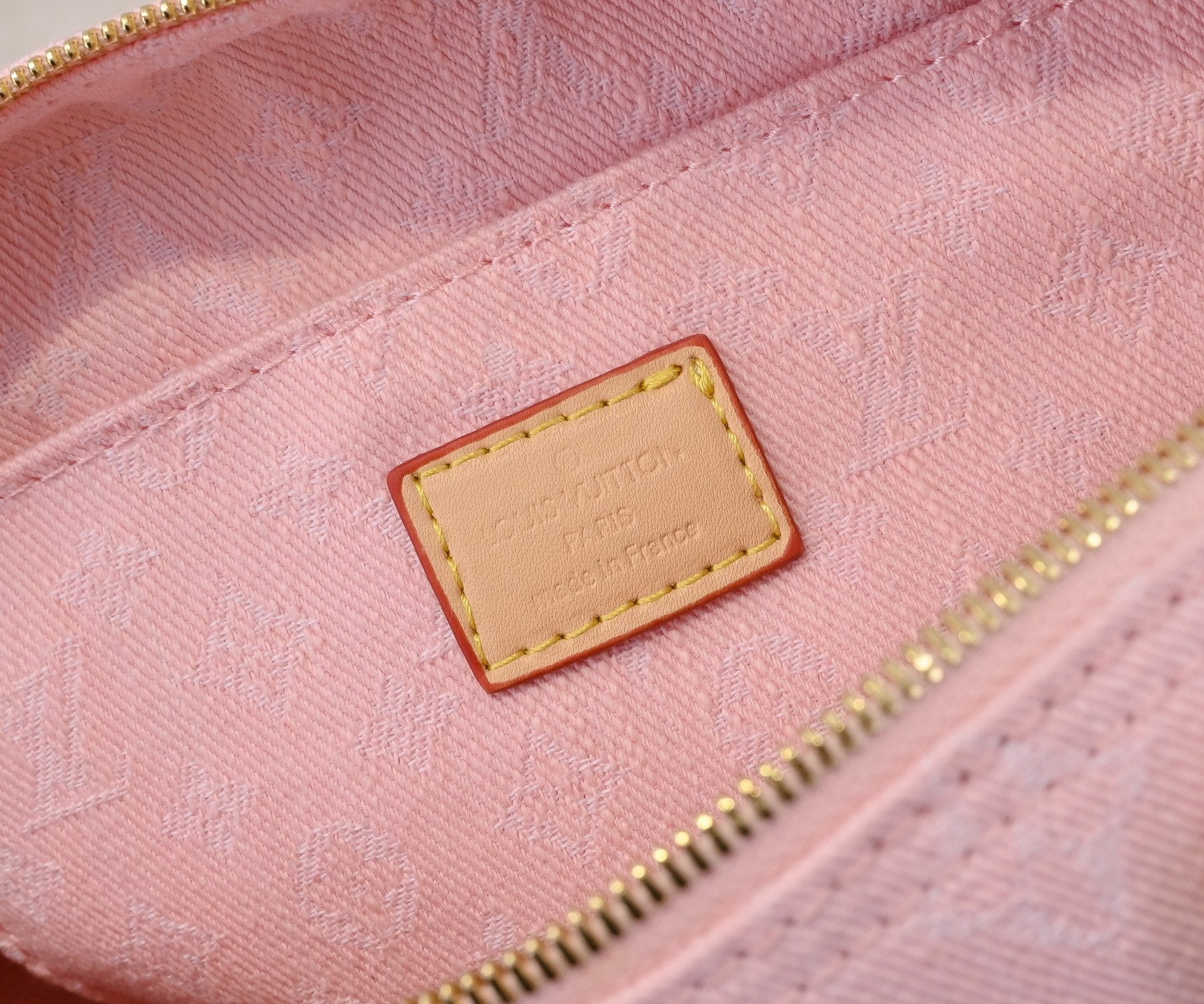 Pink Denim Jeans. Louis Vuitton's first collaboration with Takashi Murakami resulted in the classic "Colorful Monogram" collection, which immediately sparked a fashion trend. Building upon the denim designs launched in 2005, cherry elements were incorporated into LV's classic Monogram canvas, showcasing a perfect fusion of art and fashion. Dimensions: 30x21x17